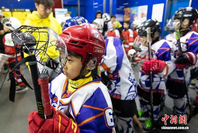 2月6日晚,第二届黄河流域九省(区)冰球邀请赛在宁夏银川开赛。赛事共吸引来自宁夏、山西、青海等省区的10余支队伍、约200名选手参赛。图为U9男女混合组的小选手准备比赛。中新社记者 杨迪 摄