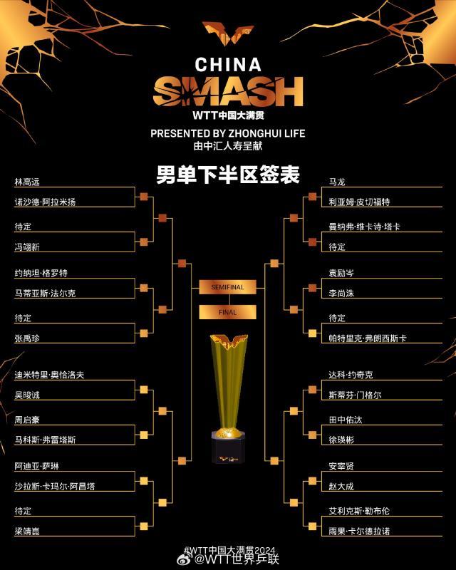 王楚钦真正的硬仗应该是从四分之一决赛开始,和他同在四分之一区的除了中国台北名将林昀儒,还有刚刚战胜过他的林诗栋,就看王楚钦和林诗栋,谁能够在这一次更高级别的比赛中从四分之一区脱颖而出。