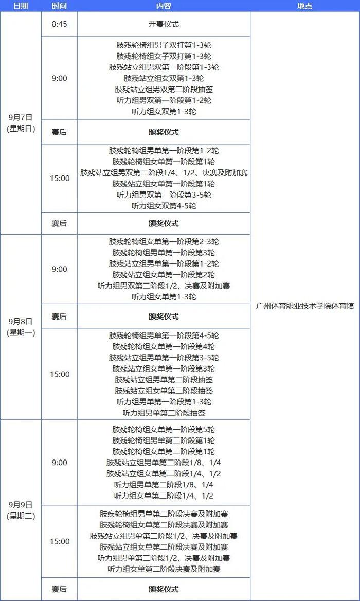 中华人民共和国第十二届残疾人运动会暨第九届特殊奥林匹克运动会乒乓球(大众组)比赛活动日程安排